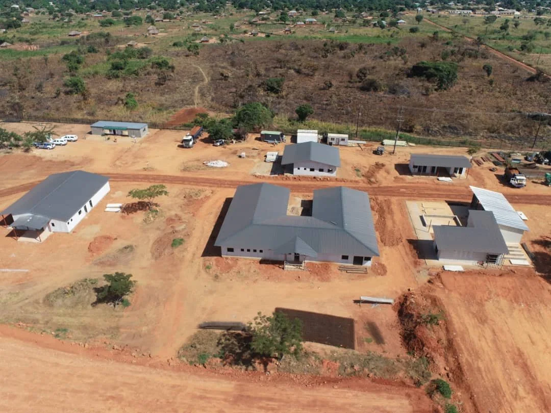 Construction of the new 80-bed District Hospital at Nchelenge, Zambia, is progressing with the completion of the access roads, accommodation blocks and a number of ancillary buildings.